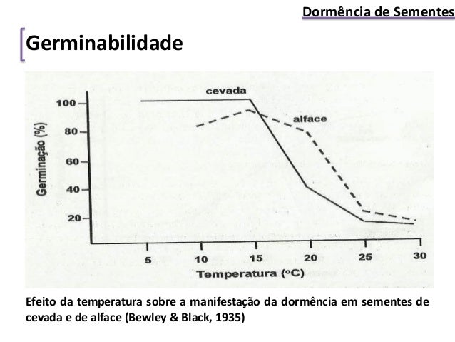8. 8. Dormência de Sementes Germinabilidade Efeito da temperatura sobre a manifestação da dormência em sementes de cevada e de alface (Bewley & Black, 1935)