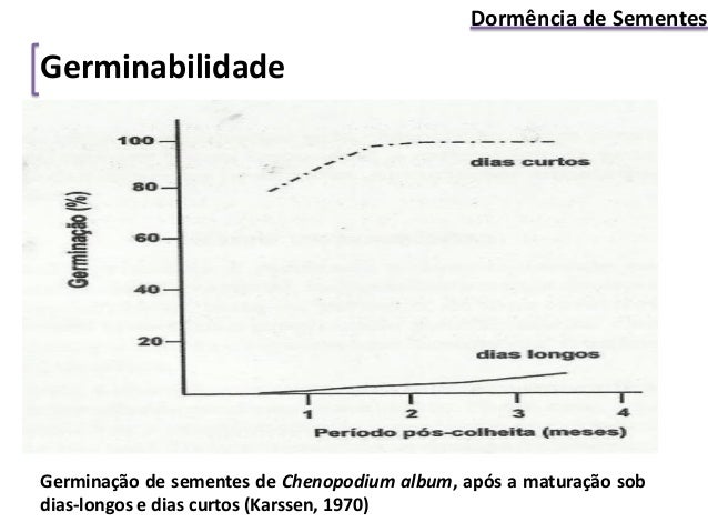 9. 9. Dormência de Sementes Germinabilidade Germinação de sementes de Chenopodium album, após a maturação sob dias-longos e dias curtos (Karssen, 1970)