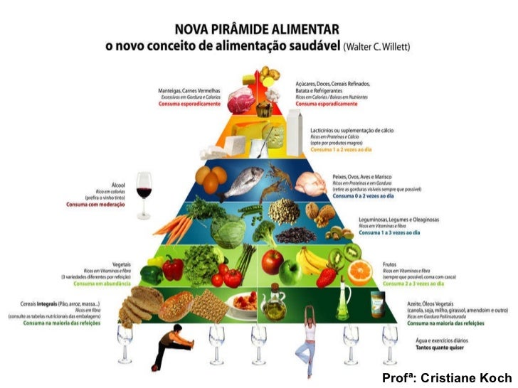 26. 26. <ul><li>Conforme essa pirâmide , os alimentos são separados em energéticos , reguladores, construtores , e energéticos extras. </li></ul><ul><li>Esses alimentos devem ser consumidos em ordem decrescente. </li></ul><ul><li>Veja: </li></ul>Profª: Cristiane Koch