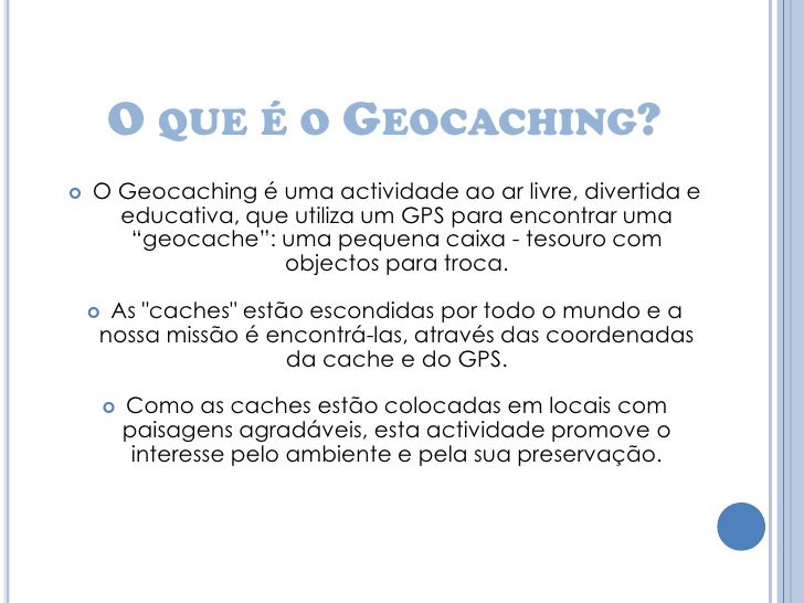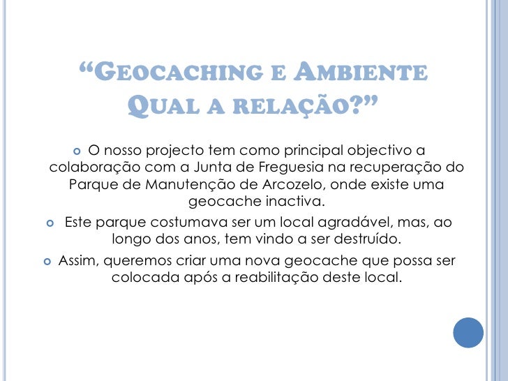PowerPoint realizado no âmbito do projecto: "Geocaching e o Ambiente - Qual a Relação?".