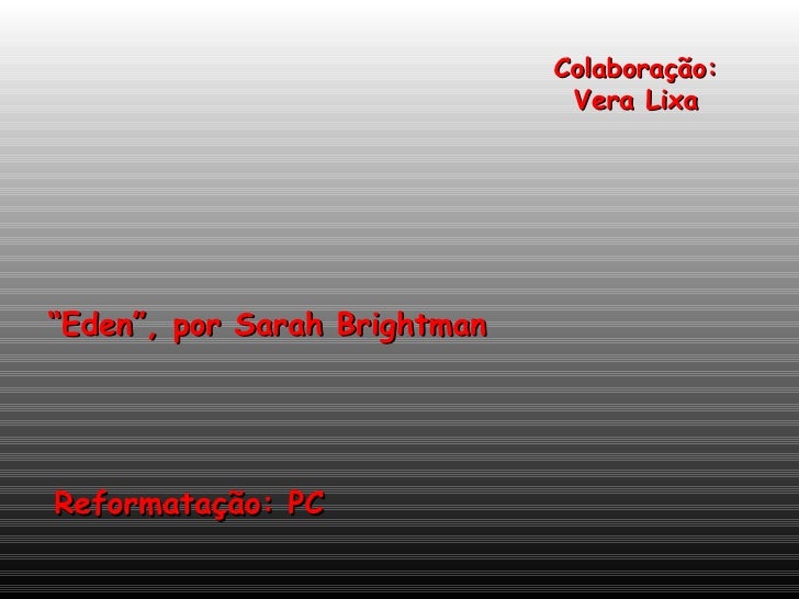 29. 31. Colaboração: Vera Lixa “ Eden”, por Sarah Brightman Reformatação: PC