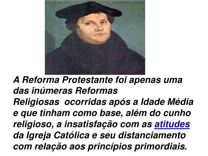 A Reforma Protestante foi apenas umadas inúmeras ReformasReligiosas ocorridas após a Idade Médiae que tinham como base, al...