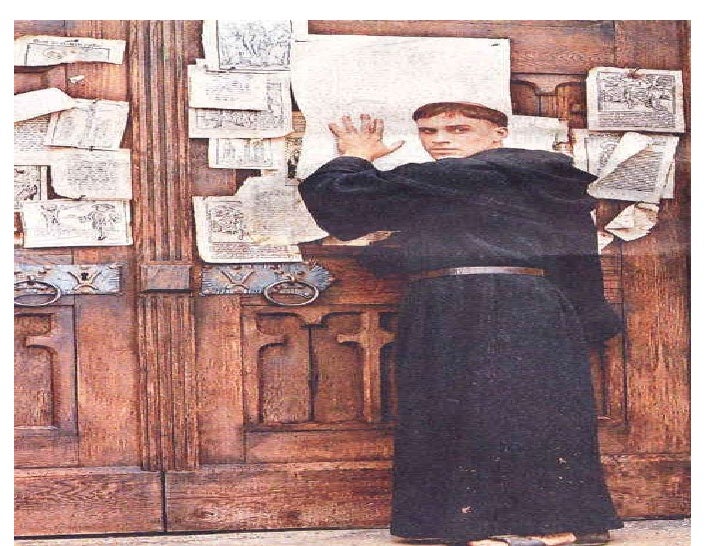 • Lutero, que foi completamente contra a  venda de indulgências, protestou com 95  proposições que afixou na porta da igre...