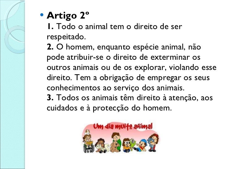 2. 2. Direitos dos animais <ul><li>Artigo 1º 1. Todos os animais nascem iguais perante a vida e têm os mesmos direitos à existência. </li></ul>