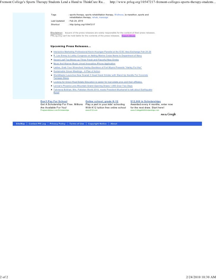 Fremont College's Sports Therapy Students Lend a Hand to ThinkCure Runners.