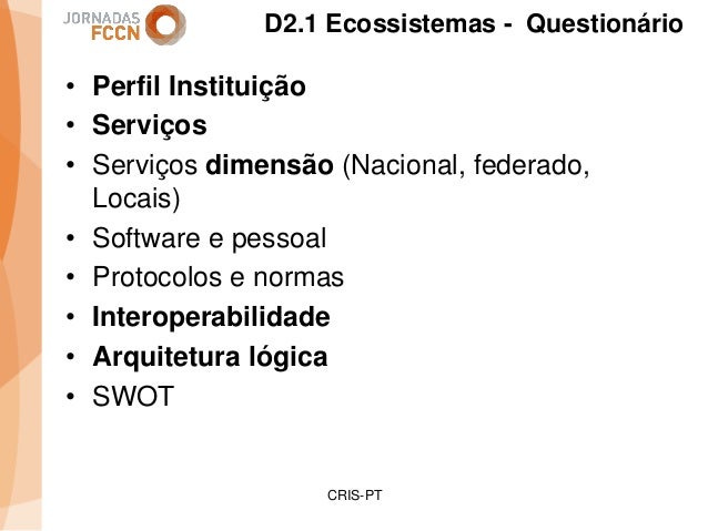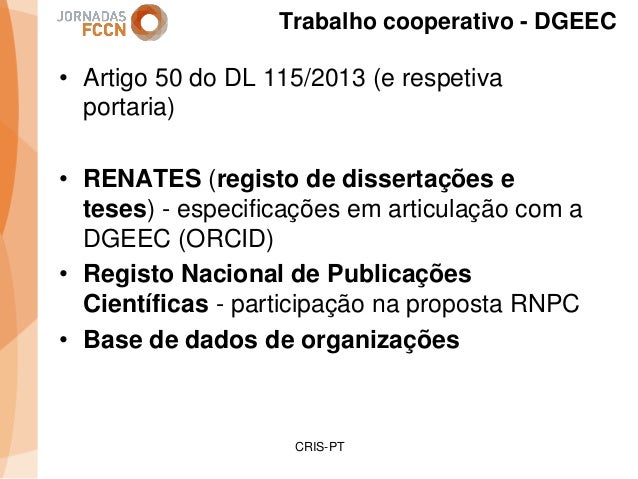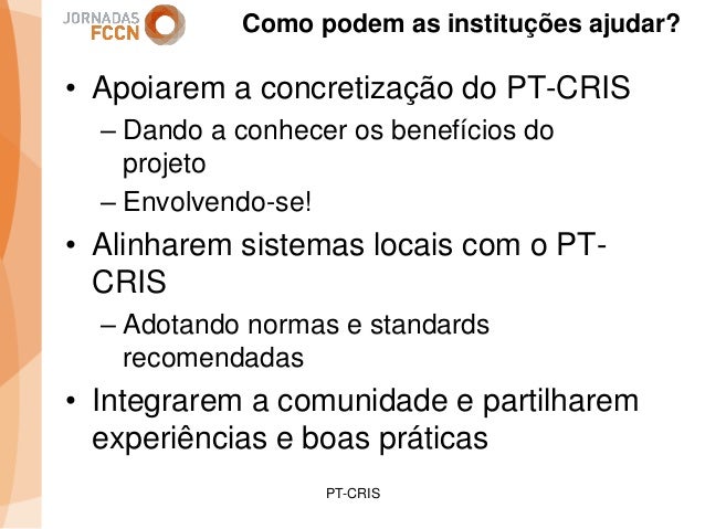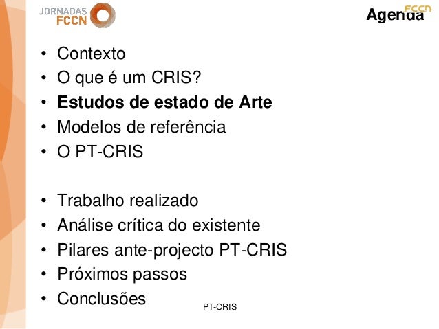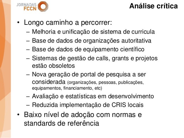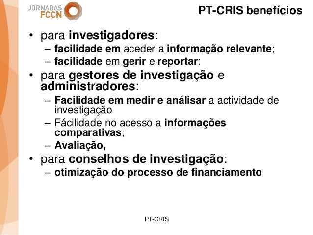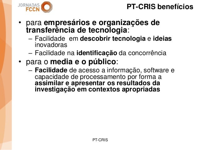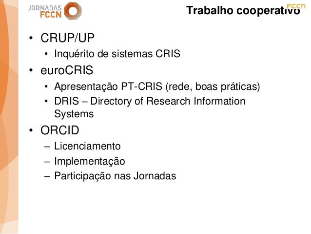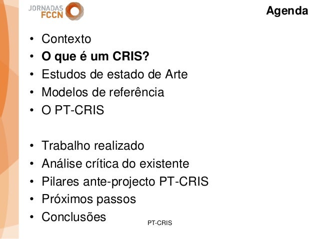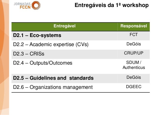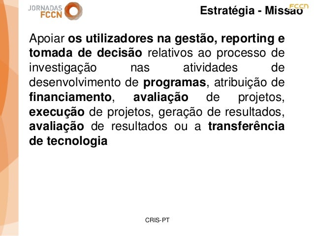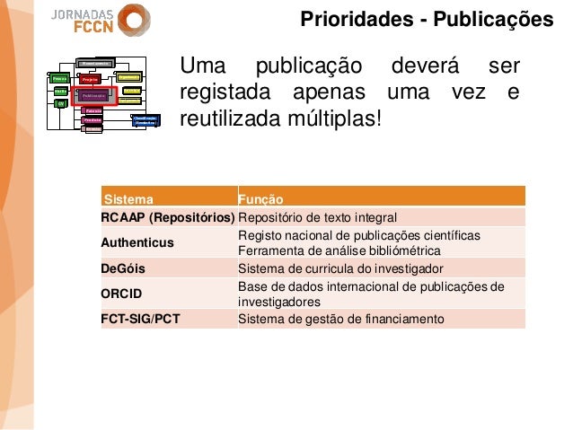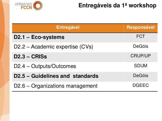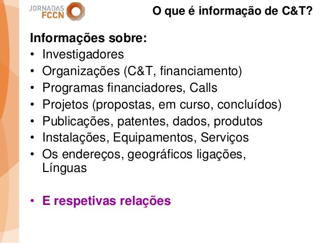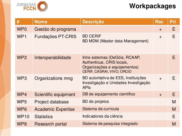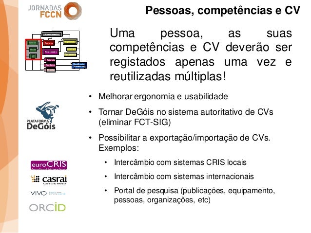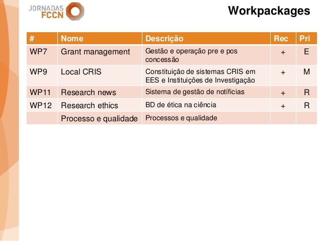 Considerando as sinergias que decorreram/decorrem da integração da FCCN na FCT foi criado um grupo de trabalho interno com o objetivo de perspetivar eventuais melhorias aos processos informáticos conjuntos. Na sequência desse processo foi identificada a necessidade de desenvolver um sistema integrado de gestão de ciência e tecnologia. Com esse fim promoveram-se alguns encontros onde participaram peritos nacionais representativos de diferentes comunidades que também operam sistemas de gestão ciência e tecnologia.