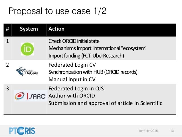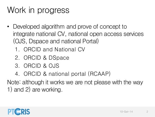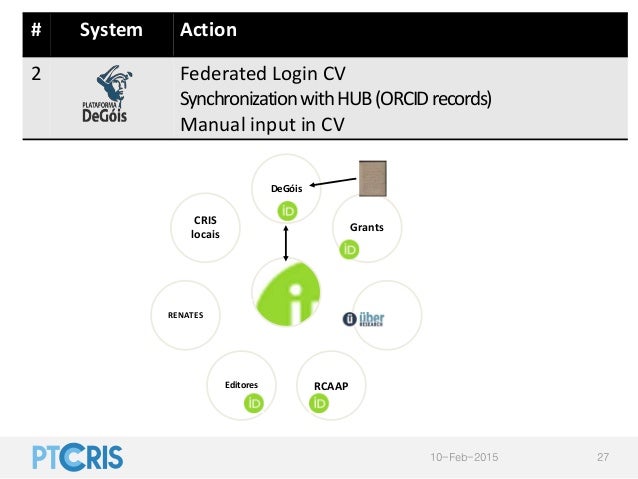 One of PTCRIS’ goals is to reduce the burden of research output management, by adopting an “input once, re-use often” principle. In order to achieve this goal, we are developing a synchronization framework, further described in this paper, that relies on ORCID as a central hub for information exchange between the various national systems (including CV management systems, Open Access repositories, and local CRIS systems) and international systems (WoK, Scopus, Datacite, etc). Among other features, this framework will enable researchers (or managers) to register once a given research output at one of the interconnected national systems, and automatically propagate that output to the remaining ones, thus ensuring global consistency of the stored information.