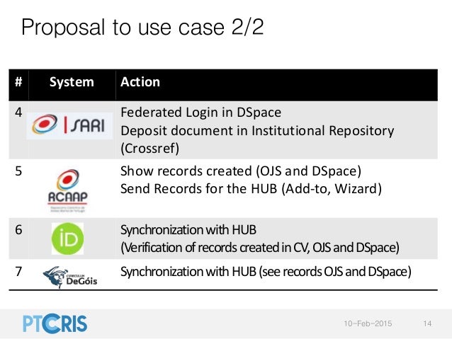 PTCRIS (Portuguese CRIS) is a program, officially initiated in May 2014, which aims to ensure the creation and sustained development of a national integrated information ecosystem, to support research management accordingly to the best international standards and practices.