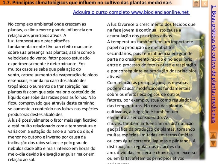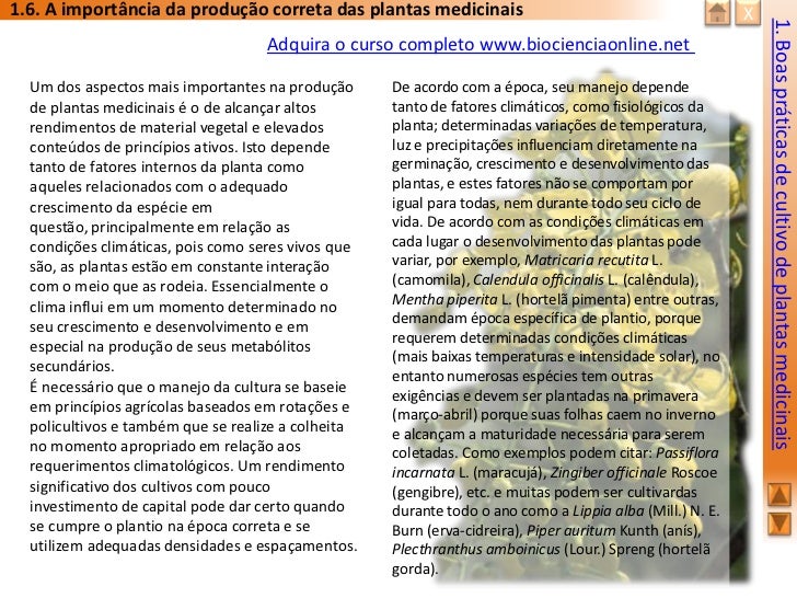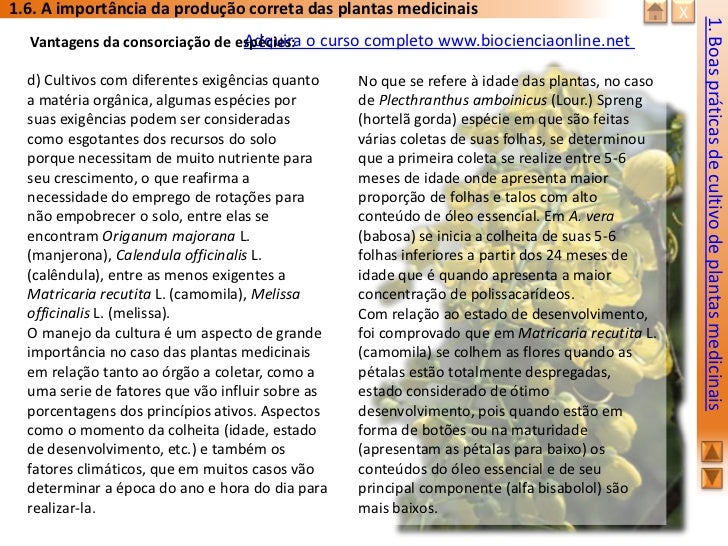 Aborda aspectos relacionados às Boas Práticas de Cultivo. Através deste curso o participante poderá ter informações necessárias para o cultivo de forma segura e científica.
