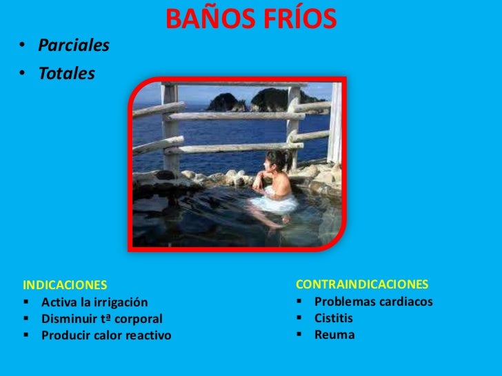 BAÑOS FRÍOS• Parciales• TotalesINDICACIONES                   CONTRAINDICACIONES Activa la irrigación          Problemas...