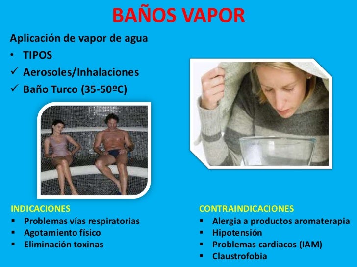 BAÑOS VAPORAplicación de vapor de agua• TIPOS Aerosoles/Inhalaciones Baño Turco (35-50ºC)INDICACIONES                   ...