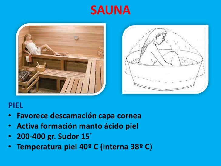 SAUNAPIEL• Favorece descamación capa cornea• Activa formación manto ácido piel• 200-400 gr. Sudor 15´• Temperatura piel 40...