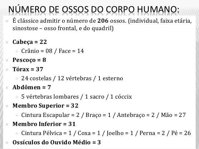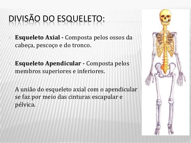 Divisão anatômica do Sistema esquelético e os principais ossos do corpo.