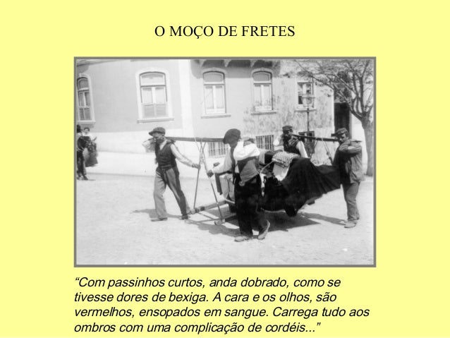 O MOÇO DE FRETES“Com passinhos curtos, anda dobrado, como setivesse dores de bexiga. A cara e os olhos, sãovermelhos, enso...
