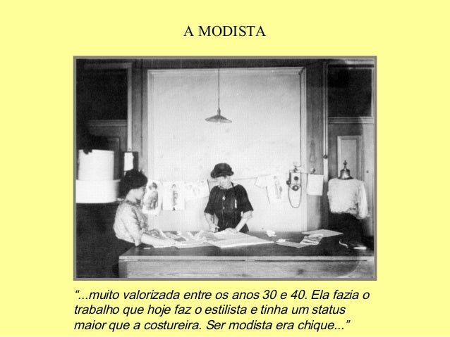 A MODISTA“...muito valorizada entre os anos 30 e 40. Ela fazia otrabalho que hoje faz o estilista e tinha um statusmaior q...