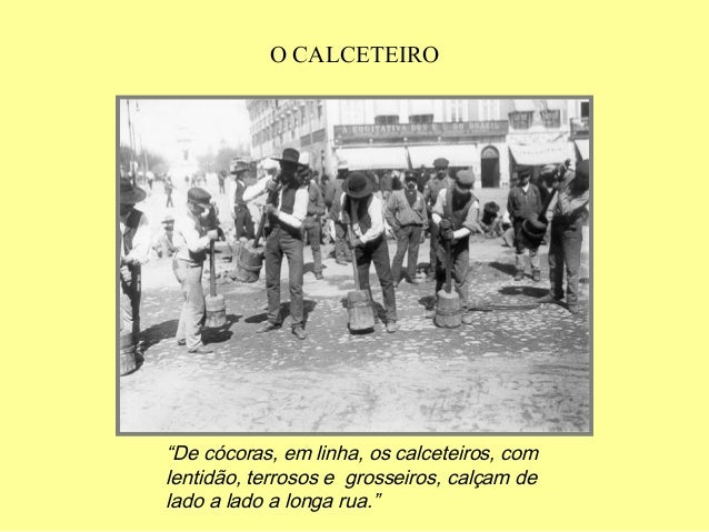 O CALCETEIRO“De cócoras, em linha, os calceteiros, comlentidão, terrosos e grosseiros, calçam delado a lado a longa rua.”