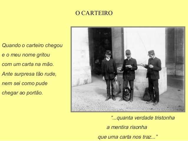 32. 32. O CARTEIROQuando o carteiro chegoue o meu nome gritoucom um carta na mão.Ante surpresa tão rude,nem sei como pudechegar ao portão.“...quanta verdade tristonhaa mentira risonhaque uma carta nos traz...”