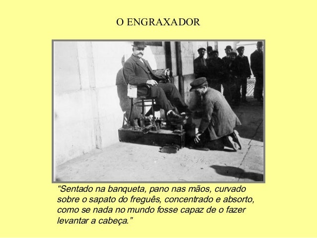 O ENGRAXADOR“Sentado na banqueta, pano nas mãos, curvadosobre o sapato do freguês, concentrado e absorto,como se nada no m...