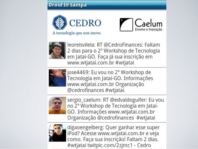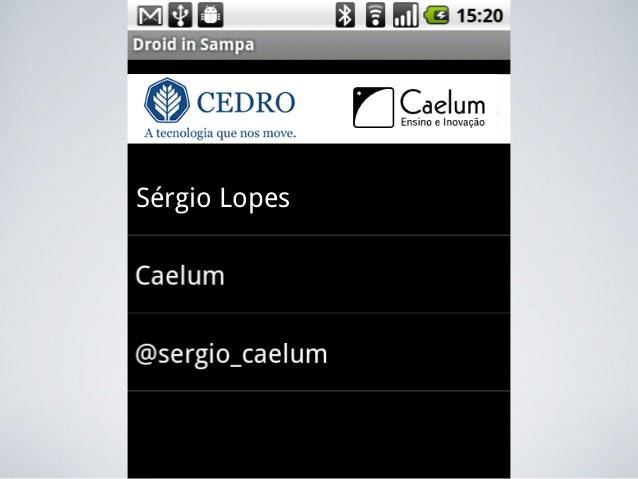 Palestra de Android apresentada no 2o Workshop de Tecnologia de Jataí-GO em Outubro de 2010 por Sérgio Lopes