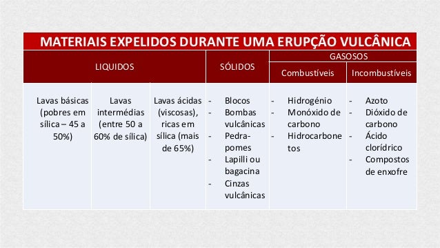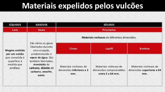 Vulcanologia, distribuição geográfica dos vulcões, tipos de vulcões, tipos de erupções, fenómenos de vulcanismo secundário, materiais expelidos pelos vulcões
