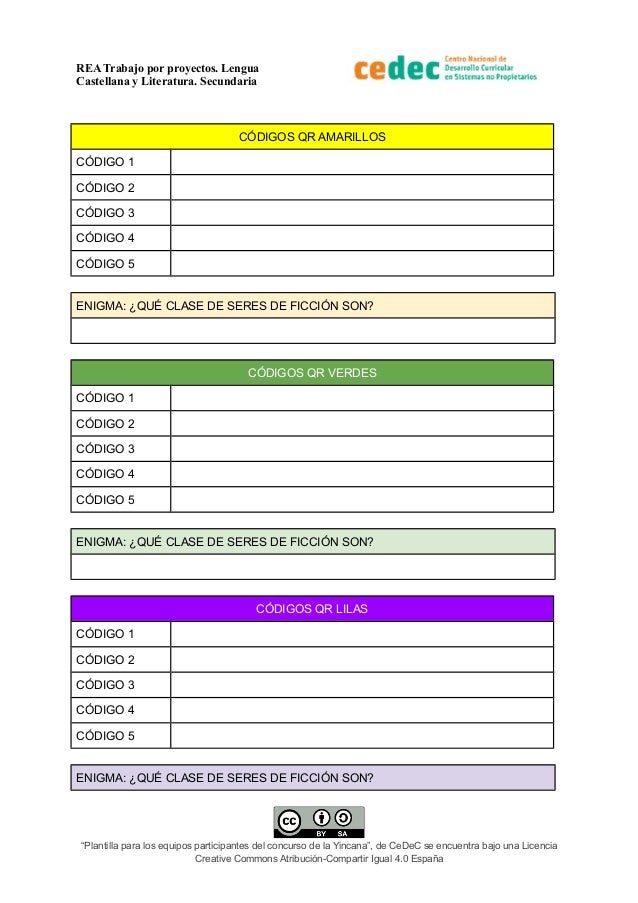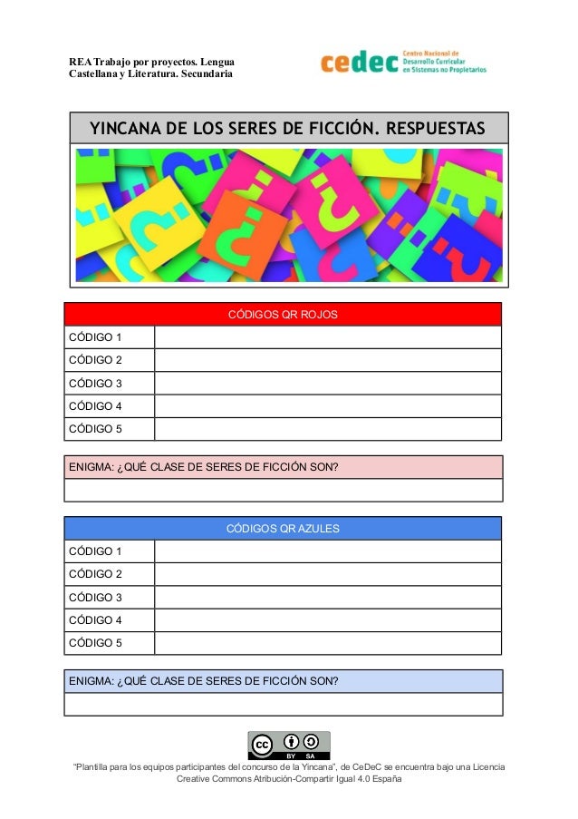 Plantilla Equipos participantes del concurso de la yincana. REA “Yincana de los seres de ficción”