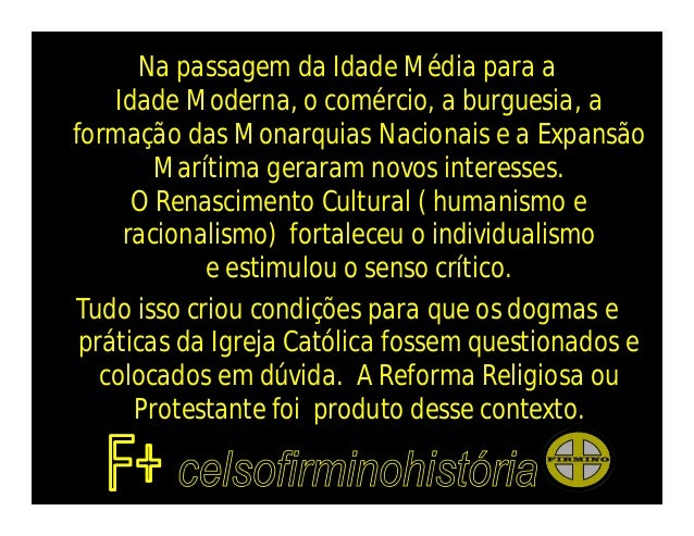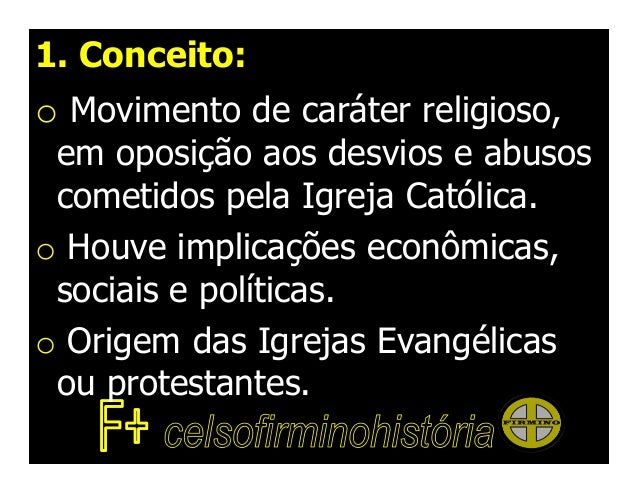Reforma religiosa ou protestante: contexto religioso, econômico, político e social, luteranismo, calvinismo, anglicanismo, contrarreforma.