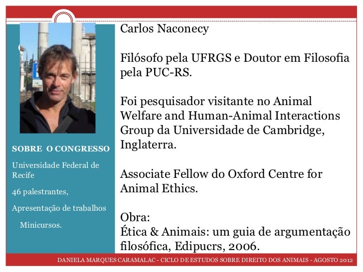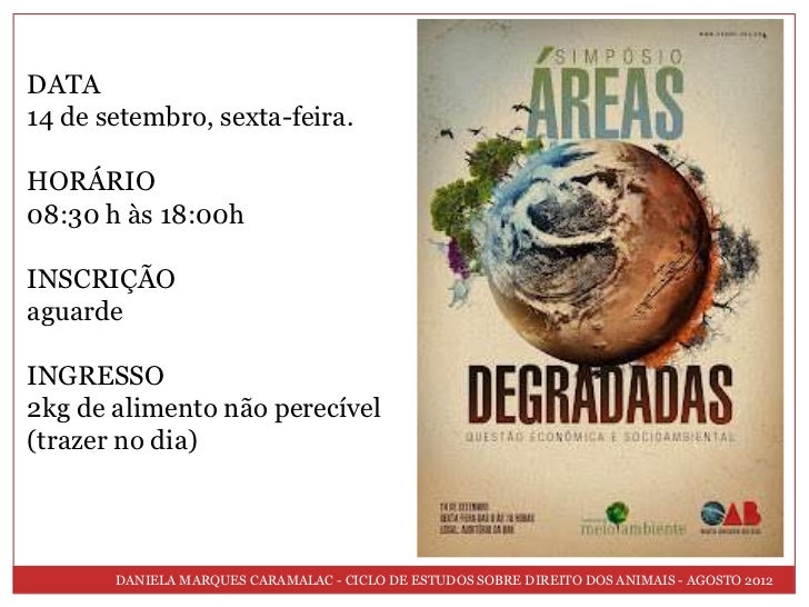 Palestra ministrada em 18 de agosto de 2012, pela Dra Daniela Marques Caramalac no Ciclo de Estudos sobre Direito dos Animais promovido pela Comissão do Meio Ambiente da OAB/MS