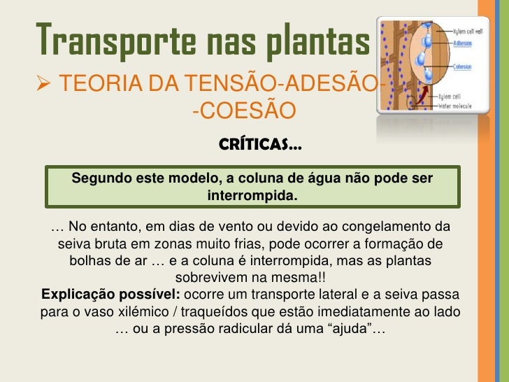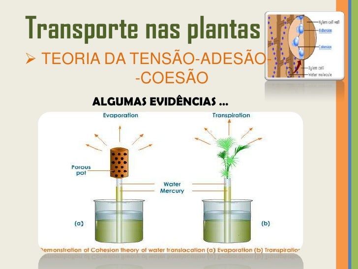 43. 43. Transporte nas plantas TEORIA DA TENSÃO-ADESÃO- -COESÃO ALGUMAS EVIDÊNCIAS …