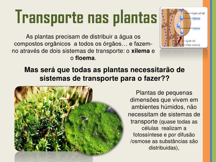 6. 6. Transporte nas plantas SURGEM OS MEIOS DE TRANSPORTE!!