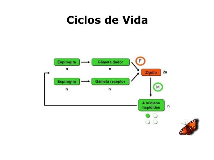 Ciclos de Vida ►   Ciclo de vida da espirogira ▹  organismo  haplonte  - só o zigoto pertence à fase diplóide. ▹  o conteú...