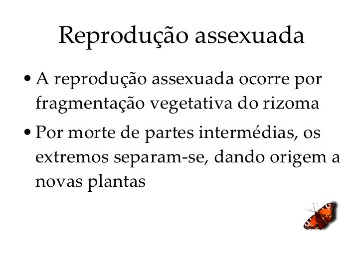 Reprodução assexuada <ul><li>A reprodução assexuada ocorre por fragmentação vegetativa do rizoma </li></ul><ul><li>Por mor...