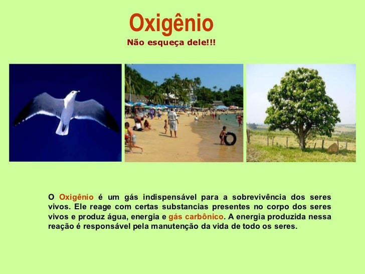 Oxigênio Não esqueça dele!!! O  Oxigênio  é um gás indispensável para a sobrevivência dos seres vivos. Ele reage com certa...