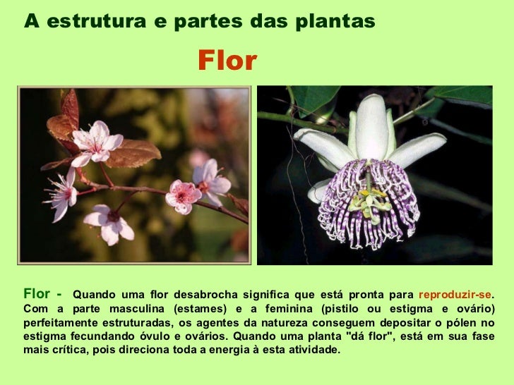 A estrutura e partes das plantas   Flor -  Quando uma flor desabrocha significa que está pronta para  reproduzir-se . Com ...
