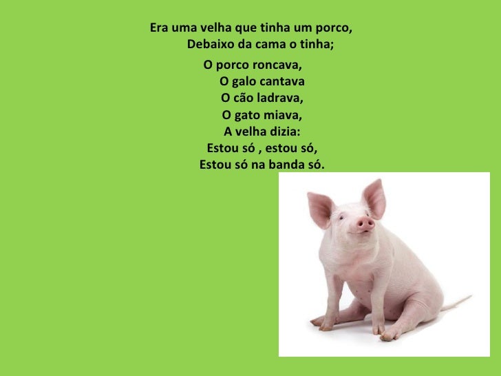 <ul><li>Era uma velha que tinha um porco,  Debaixo da cama o tinha;  </li></ul><ul><li>O porco roncava, O galo cantava O c...