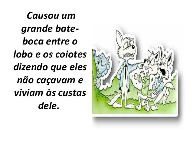 7. 7.  Causou um grande bate- boca entre o lobo e os coiotes dizendo que eles não caçavam e viviam às custas dele.