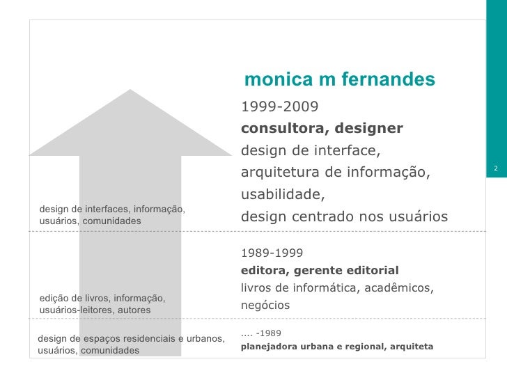 Apresentação feita pela Monica M Fernandes, consultora e designer de interfaces, especialista em usabilidade, arquitetura da informação, design centrado no usuário.