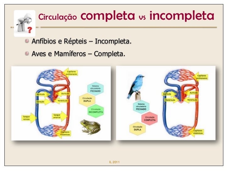 Circulação   completa vs incompletaAnfíbios e Répteis – Incompleta.Aves e Mamíferos – Completa.                        IL ...