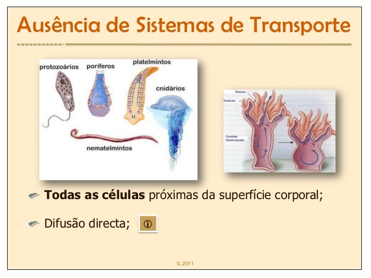 2. 2. Ausência de Sistemas de Transporte Todas as células próximas da superfície corporal; Difusão directa;  IL 2011
