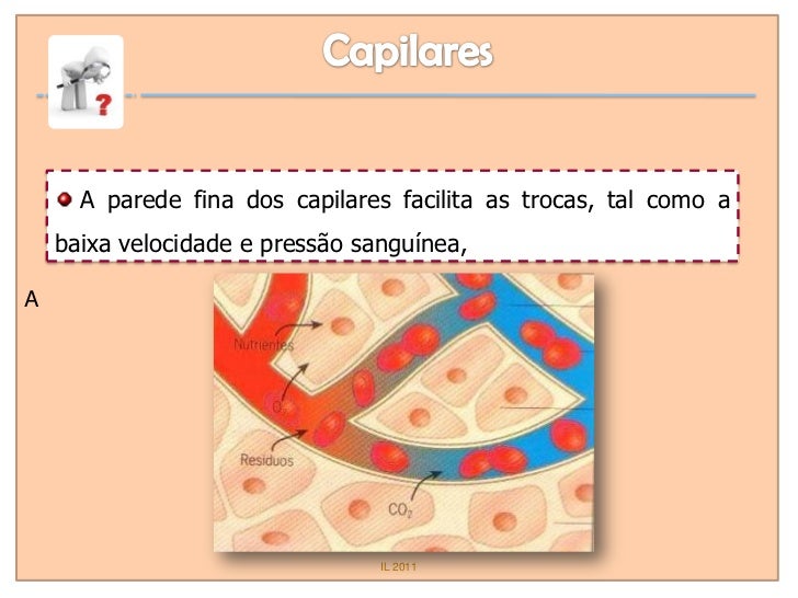 32. 32. A parede fina dos capilares facilita as trocas, tal como a baixa velocidade e pressão sanguínea,A IL 2011