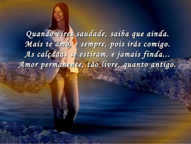 6. 6. Quando vires saudade, saiba que ainda. Mais te amo, e sempre, pois irás comigo. As calçadas se estiram, e jamais finda... Amor permanente, tão livre, quanto antigo.