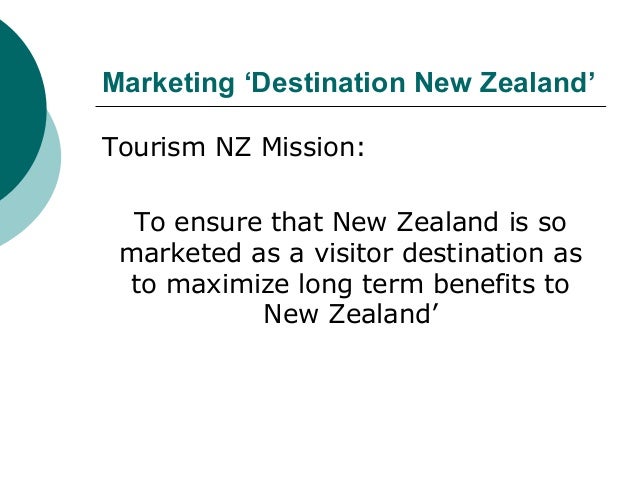 7. 7. Marketing ‘Destination New Zealand’ Tourism NZ Mission: To ensure that New Zealand is so marketed as a visitor destination as to maximize long term benefits to New Zealand’