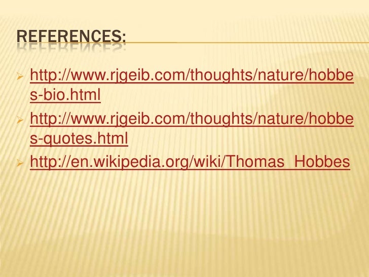 REFERENCES: http://www.rjgeib.com/thoughts/nature/hobbe  s-bio.html http://www.rjgeib.com/thoughts/nature/hobbe  s-quote...