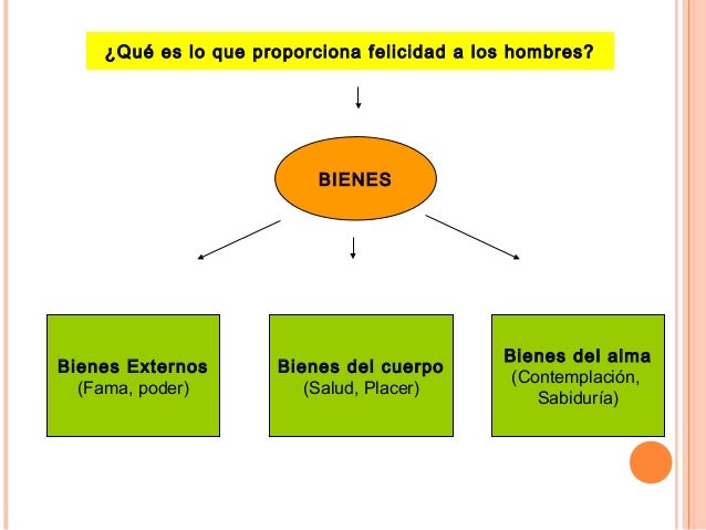 12. 12. ¿Qué es lo que proporciona felicidad a los hombres? BIENES Bienes Externos (Fama, poder) Bienes del cuerpo (Salud, Placer) Bienes del alma (Contemplación, Sabiduría)