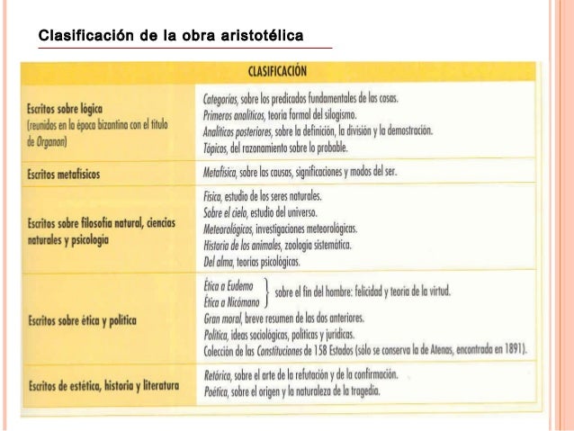 4. 4. Clasificación de la obra aristotélica