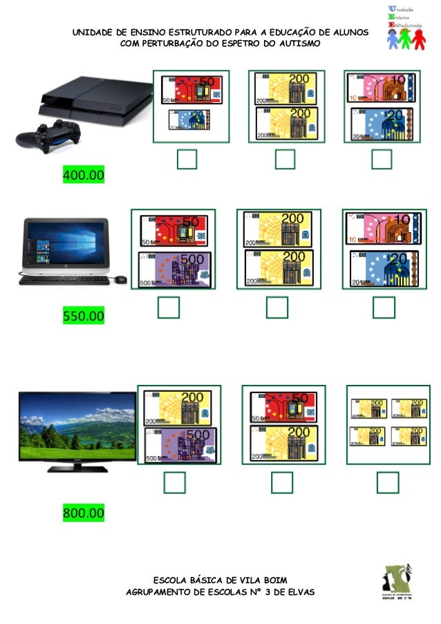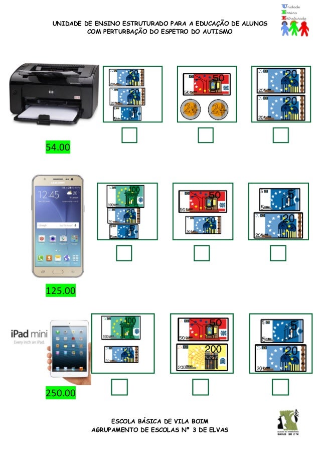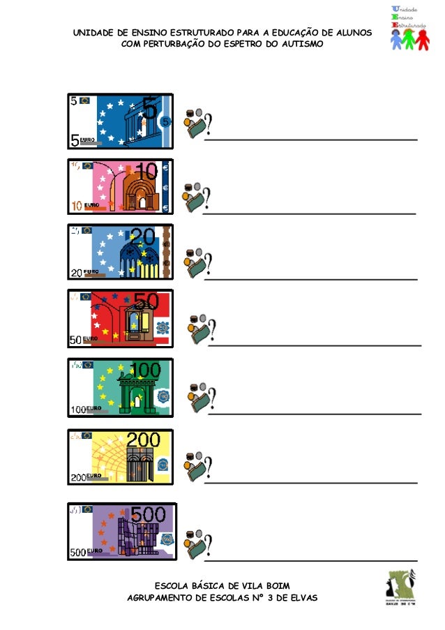 Ficheiro de Matemática Funcional : Notas e Moedas em uso.