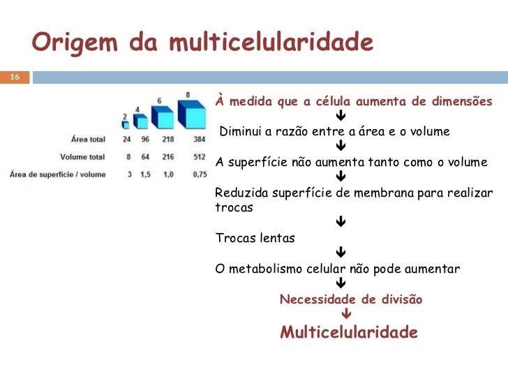 Origem da multicelularidade16                   À medida que a célula aumenta de dimensões                                ...
