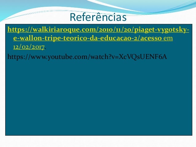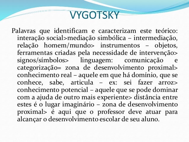 Resuminho básico com palavras chave dos teóricos Piaget, Vygotsky e Wallon.