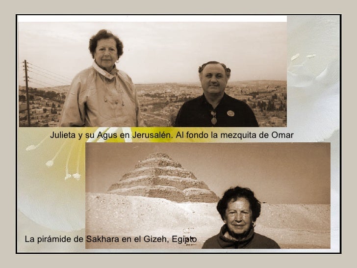 20. 21. Julieta y su Agus en Jerusalén. Al fondo la mezquita de Omar La pirámide de Sakhara en el Gizeh, Egipto