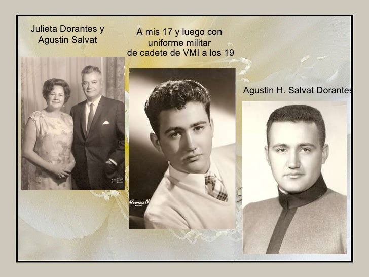 2. 3. Julieta Dorantes y Agustin Salvat Agustin H. Salvat Dorantes A mis 17 y luego con uniforme militar de cadete de VMI a los 19