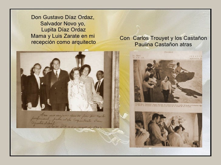 37. 38. Con Carlos Trouyet y los Castañon Paulina Castañon atras Don Gustavo Díaz Ordaz, Salvador Novo yo, Lupita Díaz Ordaz Mama y Luis Zarate en mi recepción como arquitecto